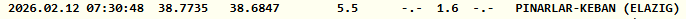 Kandilli Rasathanesi'nin verilerine göre, Saat 07.30'da kaydedilen depremin büyüklüğü 1.6 olarak ölçüldü. Yerin yaklaşık 5.5 kilometre derinliğinde gerçekleşen depremin merkez üssünün Keban olduğu bildirildi.