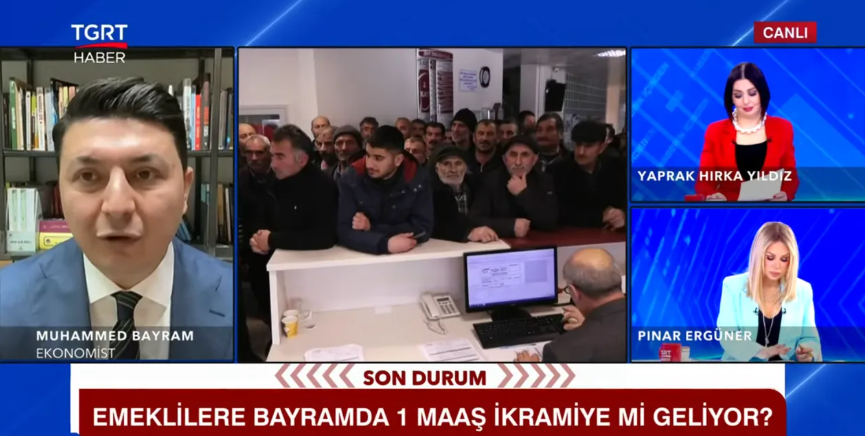 Ocak ayında maaş artışlarını alan milyonlarca emekli, şimdi de bayram ikramiyelerine odaklandı. Ramazan Bayramı öncesinde ikramiyelerde artış yapılması beklentisi öne çıkarken, 4 bin lira olan tutarın 5 bin liraya yükseltilmesi ihtimali konuşuluyor. Bu tartışmalar sürerken, ekonomist Muhammed Bayram’dan dikkat çeken bir kulis bilgisi geldi. TGRT Haber canlı yayınında Yaprak Hırka Yıldız ve Pınar Ergüner’in sorularını yanıtlayan Bayram, ikramiyelere dair daha önce hiç dile getirilmeyen bir rakamı gündeme taşıdı.