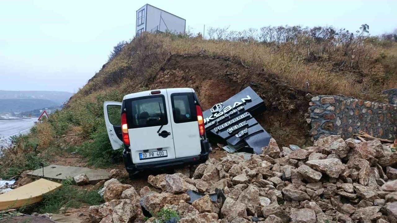 Edinilen bilgilere göre, Bandırma istikametinden Erdek yönüne seyir halinde olan 10 PR 400 plakalı ticari araç, Mağmun Düzlüğü mevkiinde sürücüsünün direksiyon hakimiyetini kaybetmesi sonucu önce reklam totemine, ardından duvara çarptı. Kazada sürücü yaralanırken, araçta büyük çapta hasar meydana geldi. Hafif yaralı sürücü, ambulansla hastaneye kaldırıldı.