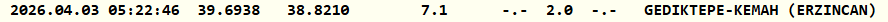 Kandilli Rasathanesi'nin verilerine göre deprem saat 05.22'de 2.0 büyüklüğünde gerçekleşti. Kemah merkezli depremin derinliği 7.1 olarak ölçüldü.