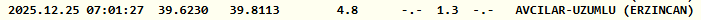 Resmi internet sitesindeki verilere göre deprem saat 07.01'de 1.3 büyüklüğünde gerçekleşti. Üzümlü merkezli depremin yerin 4.8 kilometre derinliğinde meydana geldiği belirtildi.