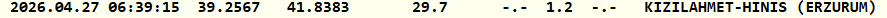 Kandilli Rasathanesi Erzurum'un Hınıs ilçesinde 1.2 büyüklüğünde deprem meydana geldiğini duyurdu. Saat 06.39'da gerçekleşen deprem yerin 29.7 kilometre derinliğinde kaydedildi.