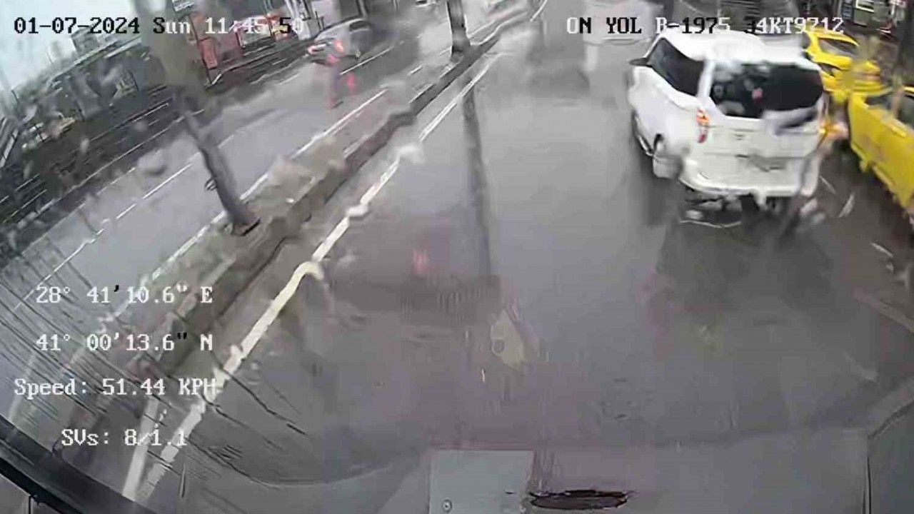 Kaza, bugün saat 11.45 sıralarında Esenyurt Edirne istikametinde meydana gelmişti. Edinilen bilgilere göre, Kıraç-Esenyurt Metrobüs HT29 hattında Recep K. idaresindeki 34 KT 9712 plakalı otobüsün önüne yan yoldan aniden bir otomobil çıktı. İETT şoförü ise otomobile çarpmamak için manevra yapıp, yol kenarındaki bilgilendirme direğine çarptı. Kaza sebebiyle şoför ve 5 yolcu yaralandı. Kazayla ilgili teknik soruşturma sürüyor. Kaza anı İETT araç içi kamerası tarafından görüntülendi.