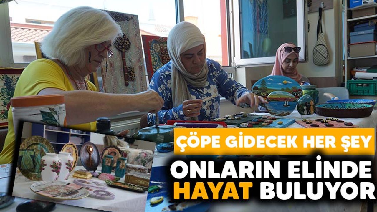 Eski çizilmiş tavalardan, cam kavanozlara, çekmecelerden, soda şişelerine hatta eskimiş rengi solmuş cep telefonu kılıflarına kadar çöpe gidecek birçok ürün kadınların elinde hayat buluyor. Yaptıkları çalışmalarla geri dönüşüme katkıda bulunan kadınlar, ürünlerini satışa sunarak da aile bütçesine destek oluyor.