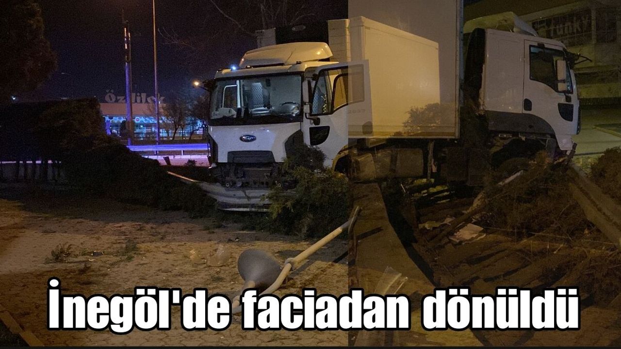 Kaza saat 04.30 sıralarında Bursa-Ankara karayolu İnegöl girişinde meydana geldi. İnegöl'den Bursa istikametine seyir halinde olan sürücü Oktay P. yönetimindeki 10 AJA 901 plakalı kamyon lastiğinin patlaması sonucu kontrolden çıktı. Orta refüjdeki bariyerleri yırtarak karşı yöne geçen kamyon savrularak bariyerlere çarpıp durdu. Şans eseri yaralanan olmadı.