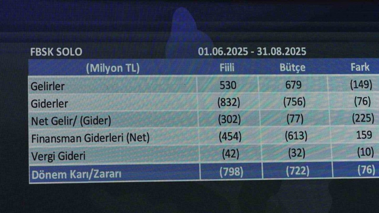 Fenerbahçe Futbol A.Ş. 01.06.2025 - 31.08.2025 tarihleri dönem raporuna göre; 3 milyar 541 milyon TL gelir, 3 milyar 362 milyon TL gider açıklanırken, dönem karı 179 milyon TL olduğu belirtildi.