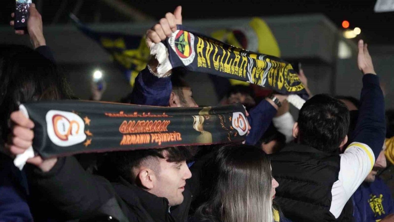 Suudi Arabistan’dan dönen Fenerbahçe kafilesini karşılamak için Sabiha Gökçen Havalimanı’na gelen Fenerbahçeli ve Galatasaraylı taraftarlar, ortak tezahüratlar eşliğinde bekleyişlerini sürdürüyor.