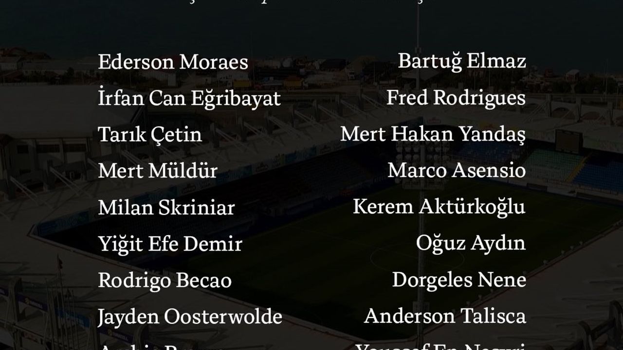 "Ederson, İrfan Can Eğribayat, Tarık Çetin, Mert Müldür, Milan Skriniar, Yiğit Efe Demir, Rodrigo Becao, Jayden Oosterwolde, Archie Brown, Levent Mercan, İsmail Yüksek, Bartuğ Elmaz, Fred, Mert Hakan Yandaş, Marco Asensio, Kerem Aktürkoğlu, Oğuz Aydın, Dorgeles Nene, Anderson Talisca, Youssef En-Nesyri, Jhon Duran."