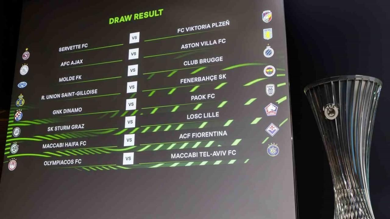 Avrupa’nın kulüp düzeyindeki üç numaralı organizasyonu UEFA Avrupa Konferans Ligi’nde son 16 turu eşleşmeleri belli oldu. İsviçre’nin Nyon kentindeki UEFA Genel Merkezi’nde yapılan kura çekiminde gruplarını lider bitiren Aston Villa (İngiltere), Club Brugge (Belçika), Fenerbahçe, Fiorentina (İtalya), Lille (Fransa), Maccabi Tel-Aviv (İsrail), PAOK (Yunanistan), Viktoria Plzen (Çekya) ile play-offlardan gelen Ajax (Hollanda), Dinamo Zagreb (Hırvatistan), Maccabi Haifa (İsrail), Molde (Norveç), Olympiakos (Yunanistan), Servette (İsviçre), Sturm Graz (Avusturya), Union Saint-Gilloise (Belçika) takımları yer aldı.