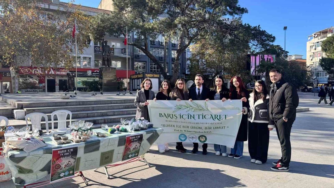 Balıkesir Üniversitesi Burhaniye Uygulamalı Bilimler Fakültesi, fakülte sosyal sorumluluk çalışmaları kapsamında Filistinli çocukların eğitimine yönelik anlamlı bir projeye imza attı. Fakülte öğrencileri tarafından yürütülen 'BUBFA ile Barış İçin Ticaret' projesi, Burhaniye Cumhuriyet Meydanı'nda kurulan satış standında gerçekleştirildi.