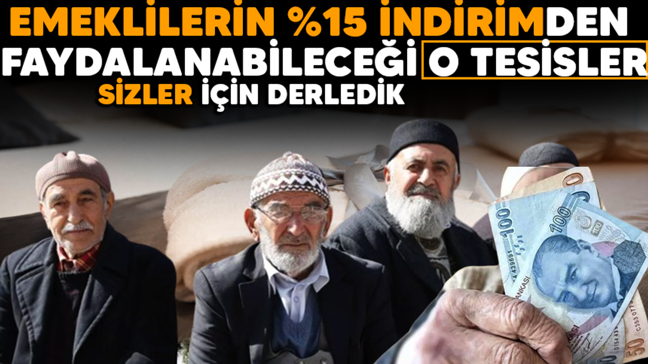 Sosyal Güvenlik Kurumu'nun 31 Mayıs 2006 tarihli ve 5510 sayılı Sosyal Sigortalar ve Genel Sağlık Sigortası Kanunu ve ilgili mevzuat uyarınca gelir ve aylık ödemesi yapılanlar, 31 Aralık 2024'e kadar kamu kurumlarına ait sosyal tesislerde %15 indirim alacaklar. Peki, emekliler bu %15 indirimi nerelerde kullanabilecekler? Sizler için derledik.