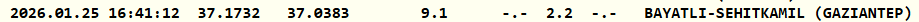 Paylaşılan verilere göre deprem saat 16.41'de 2.2 büyüklüğünde gerçekleşti. Kandilli, merkezi Şehitkamil olan depremin derinliğini 9.1 olarak açıkladı.