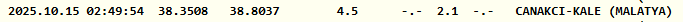 Kandilli Rasathanesi'nin resmi internet sitesi üzerinde yayınlanan listede depremin saat 02.49'da 2.1 büyüklüğünde gerçekleştiği belirtildi. Kale merkezli deprem yerin 4.5 kilometre derinlikte gerçekleşti.