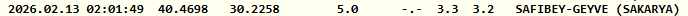 Açıklamaya göre saat 02:01’de kaydedilen depremin derinliği 5.0 kilometre, büyüklüğü ise 3.3 olarak ölçüldü. Depremin merkez üssünün Geyve olduğu bildirildi.