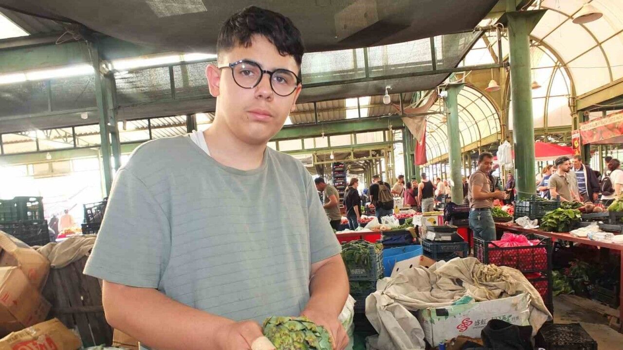 Burhaniye’de pazarda meyve sebze satan babası Rami Üzmez’e yardım eden Şehit Ahmet Çelik Ortaokulu 8. Sınıf öğrencisi Cesur Üzmez, günde bin 500 enginar soyarken, çektiği videolarla da fenomen oldu. Babasının 40 yıldır enginar soyduğunu anlatan Cesur Üzmez, işini severek yaptığını söyledi. Sosyal medya da videolar paylaştığını kaydeden Cesur Üzmez, “Ben günde bin 500 enginar soyuyorum, sosyal medya hesabım var. Orada da güzel videolar paylaşıyorum. Yani daha çok güzel şeyler var. MasterChef’ten teklif bekledim, gelmedi. Bu sefer de Acun abiden bekliyorum. Acun abi Dominik te bir enginar soyarım senin için. Bir enginar yedirirsin yani o güzel insanlara. Aç kalıyorlar. Burada bir de enginar yedirmek istemez misin Acun abi. İşimi severek yapıyorum” dedi.