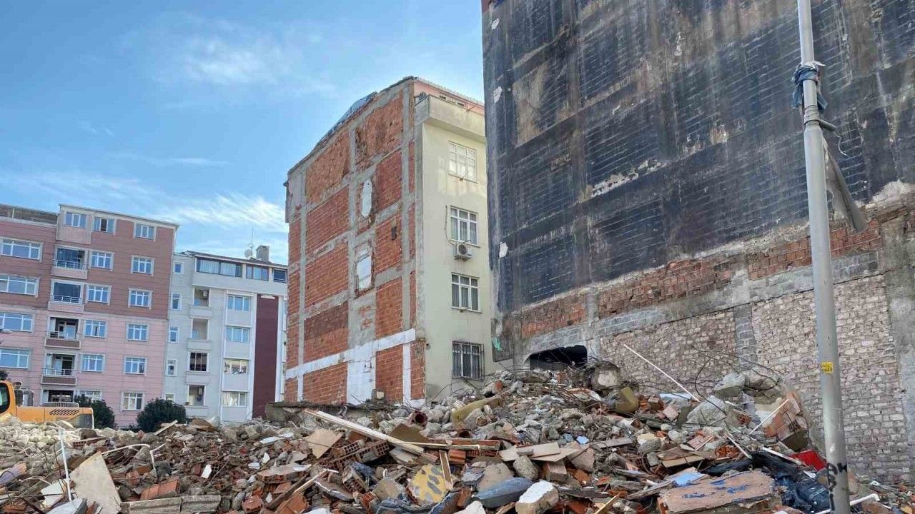Güngören’de bina yıkımı esnasında yanındaki 2 binanın duvarında hasar oluştu. Binalarda bulunan 1 daire ve iş yerinin içi molozlarla kaplandı.