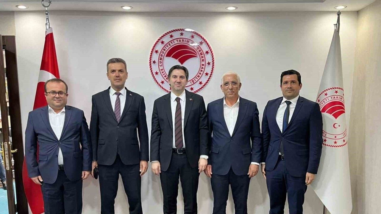 Marmarabirlik Yönetim Kurulu Başkanı Hidamet Asa, yaklaşan hasat sezonu öncesi sofralık zeytin ve yağlık zeytin rekoltesi hakkında görüş alışverişinde bulunmak üzere Tarım ve Orman Bakan Yardımcısı Dr.Ahmet Bağcı’ya ziyarette bulundu.