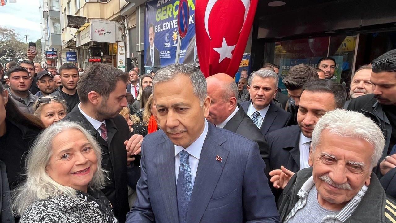 İçişleri Bakanı Ali Yerlikaya Balıkesir’in Erdek ilçesinde AK Parti Erdek Belediye Başkan Adayı Turhan Gün’ün seçim ofisi açılışına katıldı. Yerlikaya “Türkiye’nin huzur için varız” dedi.