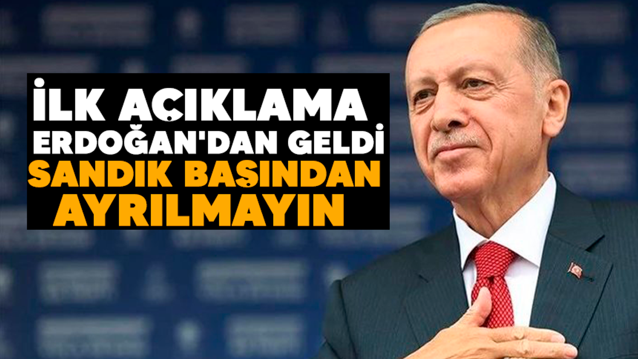 Oy sayımları devam ederken Cumhurbaşkanı Recep Tayyip Erdoğan'dan sosyal medya üzerinden ilk açıklama geldi. Erdoğan, ''Tüm dava ve yol arkadaşlarımdan, sonuçlar resmi olarak neticelenene kadar, her ne olursa olsun sandıkların başından ayrılmamalarını rica ediyorum'' dedi.