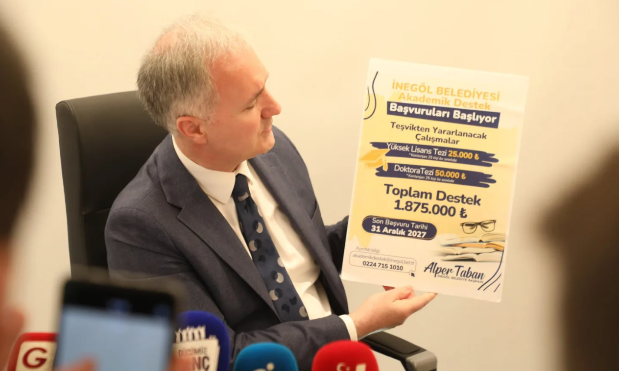 İnegöl Belediyesi’nin şehrin gelişimine akademik bir bakış açısı sunmak adına 2021 yılında başlattığı Akademik Destek Programı kapsamında, üçüncü dönem için kayıt süreci başladı. İlk iki dönemde İnegöl’e dair 5 doktora ve 10 yüksek lisans tezinin hazırlanmasını sağlayan Akademik Destek Programının yeni dönem duyurusu için bugün İnegöl Belediye binasında basın toplantısı düzenlendi. Belediye Başkanı Alper Taban ile birlikte Uludağ Üniversitesi İnegöl Meslek Yüksek Okulu Öğretim Görevlisi Dr. Cihad Doğan ve encümen üyelerinin hazır bulunduğu basın toplantısında, 07 Nisan 2026 ve 31 Aralık 2027 dönemini kapsayan Akademik Destek Programının detayları kamuoyu ile paylaşıldı.