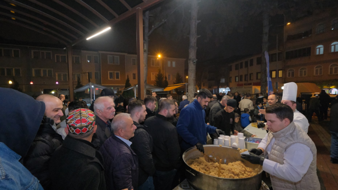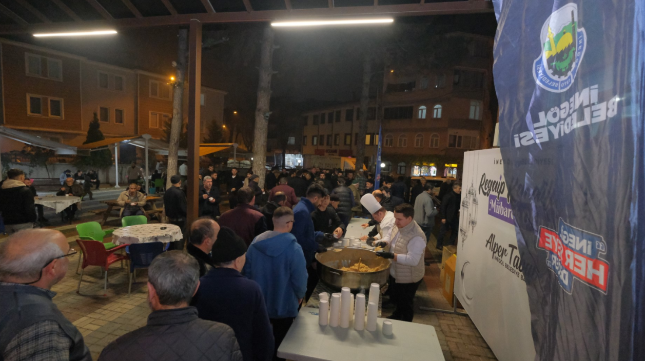 Namaz sonrası protokol üyeleri cemaatle kandilleşip sohbet ederken, Gastro İnegöl ekibi tarafından da namazın ardından bin kişilik helva ikramı yapılarak kandili gecesi helva geleneği sürdürüldü.