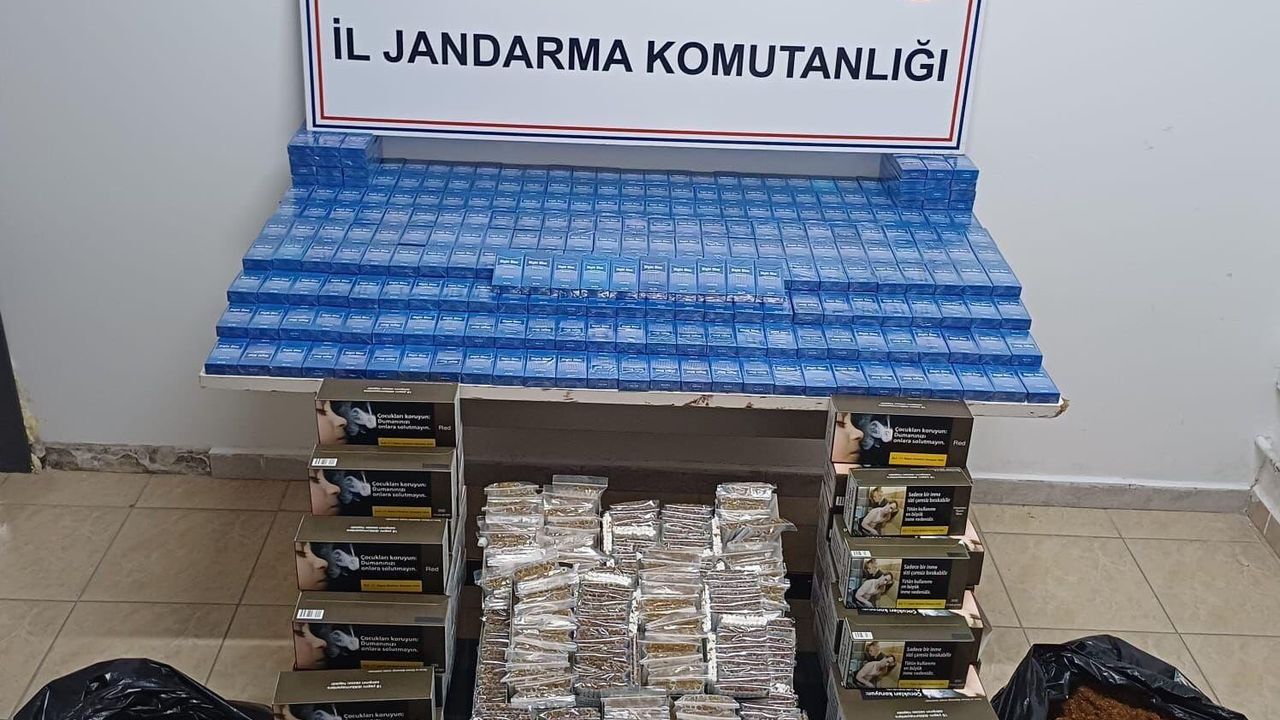 Yapılan aramalarda, 15 bin 380 adet paketlenmiş ve içime hazır sigara ile 8 bin 400 adet sarı filtreli içime hazır sigara ele geçirildi. Ayrıca 8 bin 800 adet boş makaron ve 22 kilogram kıyılmış tütün bulundu.