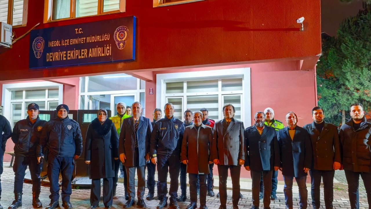 22.30’da şehir merkezinde polis noktası ziyaretiyle başlayan ziyaretler kapsamında, ardından Atatürk Bulvarı üzerindeki esnaflar ziyaret edildi. Daha sonra taksi durağı ziyareti yapıldı. Yılbaşı gecesi görevinin başında olan bir başka kamu görevlisi grup ise temizlik personeliydi. İnegöl Belediyesi hizmet binası oldu. Burada da Çözüm Merkezi ve Zabıta Müdürlüğü’n de görevli personellerin yeni yılı kutlandı.