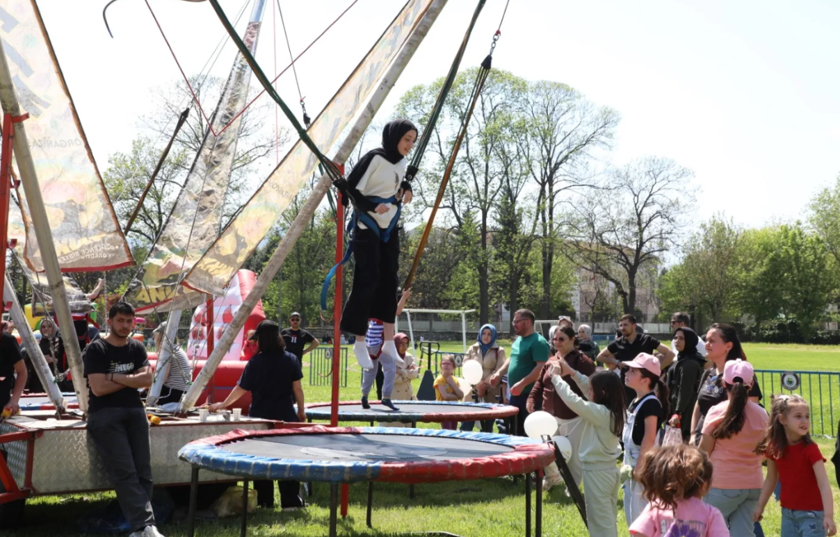 Trambolinde gönüllerince eğlenen çocuklar, balon park oyun alanlarında da coşkuyla eğlendiler. Şenlik alanında ayrıca İnegöl Belediyespor tarafından spor alanları kuruldu.