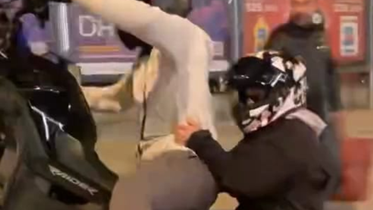 Kaza anı, çevredeki bir sürücünün cep telefonu kamerasına yansıdı. Görüntülerde, motosikletin ön tekerleğini kaldırmaya çalıştığı sırada devrildiği ve iki kişinin yola savrulduğu anlar yer aldı.