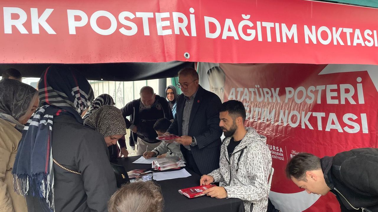 Bursa Büyükşehir Belediyesi, kentin dört bir yanını Ulu Önder Mustafa Kemal Atatürk’ün posterleriyle donatırken, 17 ilçede vatandaşlara 60 bin adet Ata posteri dağıtarak Cumhuriyet coşkusunu evlere taşıyor.