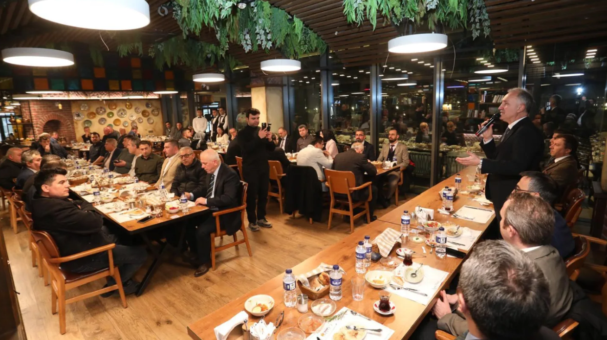 Programda selamlama konuşması yapan Başkan Alper Taban, Ramazan ayının birlik, beraberlik ve dayanışma ayı olduğuna dikkat çekerek sözlerine teşekkürle başladı. Başkan Taban açıklamasında, “Birlik ve beraberliğe her zamankinden daha fazla ihtiyaç duyduğumuz bu günlerde bu sofrayı bereketlendirdiğiniz için her birinize teşekkür ediyor, Ramazan-ı Şerif’inizi tebrik ediyorum. Elhamdülillah bizleri bu günlere ulaştıran Cenab-ı Allah’a şükrediyoruz. Ancak bir taraftan da ülkemizin çevresinde yaşanan hadiseleri görüyoruz. Coğrafyamız adeta bir ateş çemberi. İran’da yaşanan olaylar, Gazze’deki zulüm ve farklı coğrafyalardaki acılar yüreğimizi yakıyor. Yapılan zulümleri lanetliyor, kınıyoruz. Cenab-ı Allah kötüye fırsat vermesin. Bu birlik ve beraberlikle ettiğimiz duaların kabul olmasını niyaz ediyorum.” dedi.