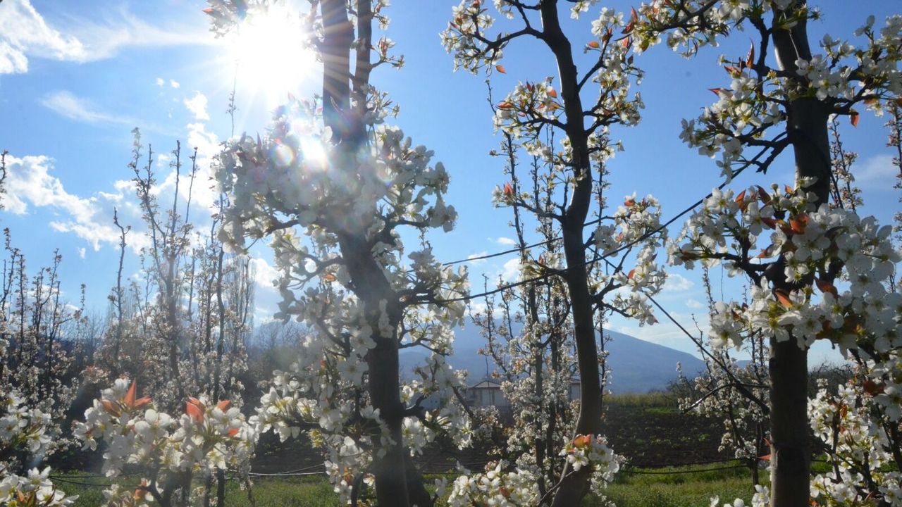 Kentin meşhur deveci armudu üretildiği bahçelerde ise ağaçlardaki beyaz çiçekler ve zeminin yeşilliğiyle ayrı bir güzellik oluştu.
