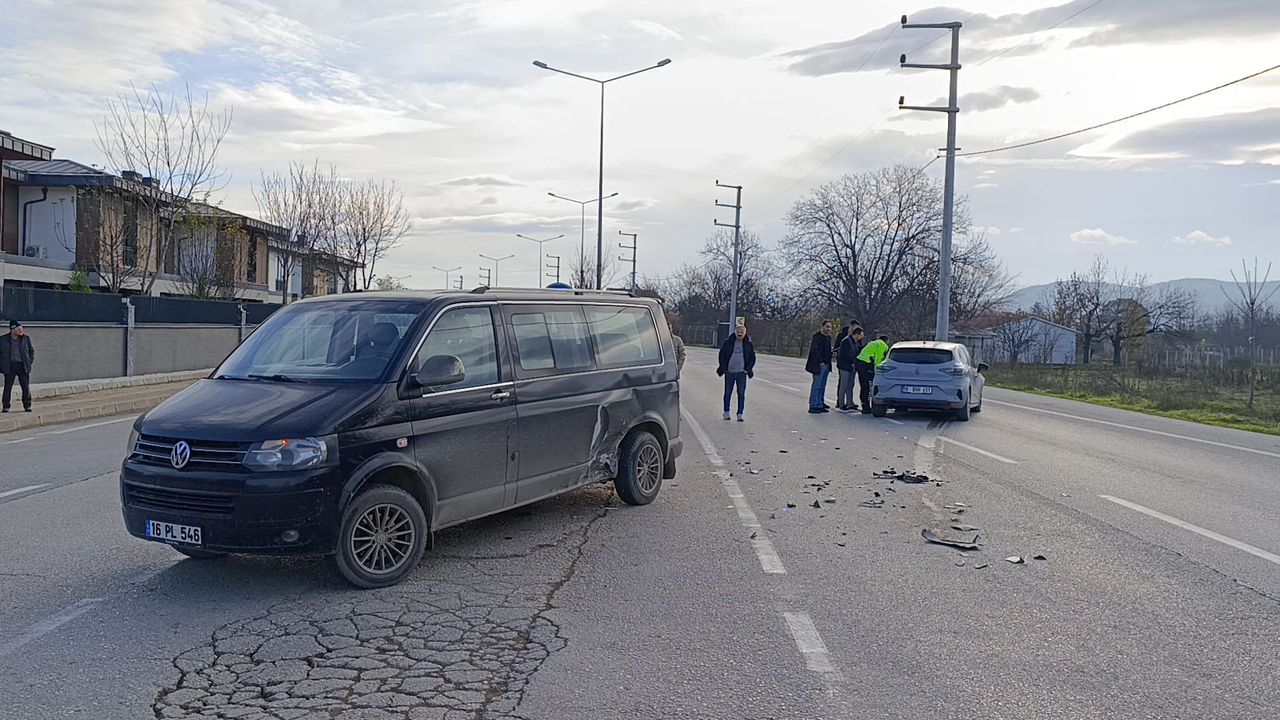 Edinilen bilgiye göre Ahmet Türkel Çevre yolu üzerinde Hocaköy kavşağından İsaören kavşağı istikametine seyir halinde olan Feyza D.(30) yönetimindeki 16 BHH 451 plakalı otomobil, dönüş yapmak isteyen sürücü Özcan Ö.(57) yönetimindeki 16 PL 546 plakalı minibüs ile çarpıştı.