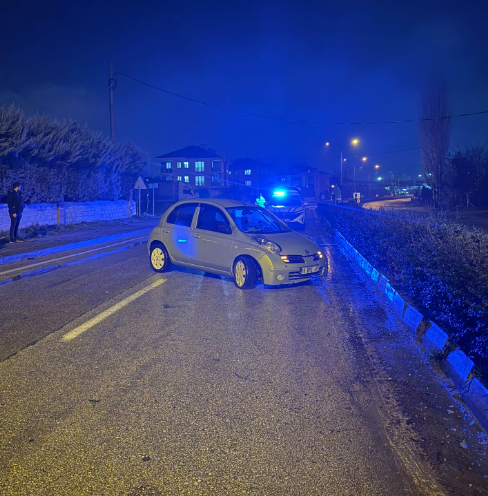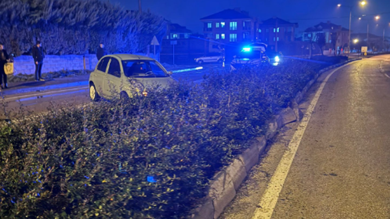 Otomobil karşı şeride geçerek durdu. Kazada şans eseri yaralanan olmazken otomobil de maddi hasar meydana geldi.