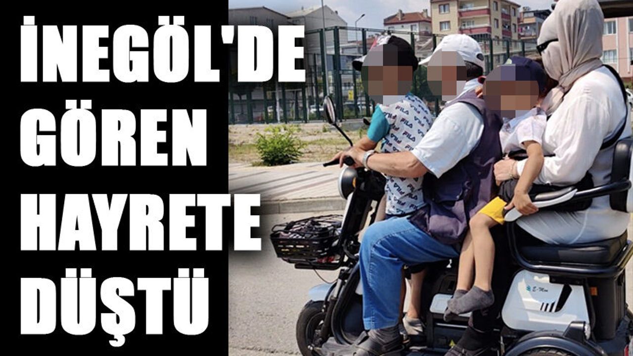 İnegöl'de seyir halindeki 3 tekerlekli elektrikli bisiklete binenleri gören hayrete düştü.