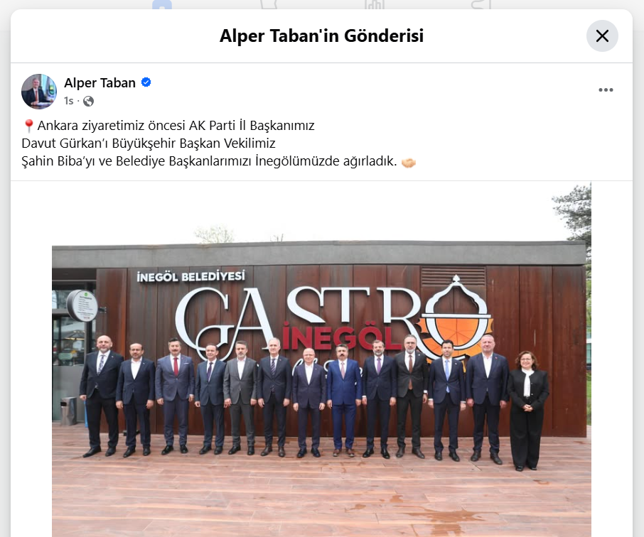 Başkan Taban, sosyal medya hesabından yaptığı paylaşımda; AK Parti İl Başkanı Davut Gürkan, Büyükşehir Başkan Vekili Şahin Biba ve ilçe belediye başkanlarını İnegöl’de ağırladıklarını duyurdu.