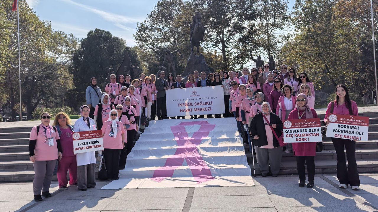 İnegöl İlçe Sağlık Müdürlüğü yetkilileri, yürüyüşün ardından vatandaşlara broşür dağıtarak meme kanseri taramaları hakkında bilgilendirmede bulundu.