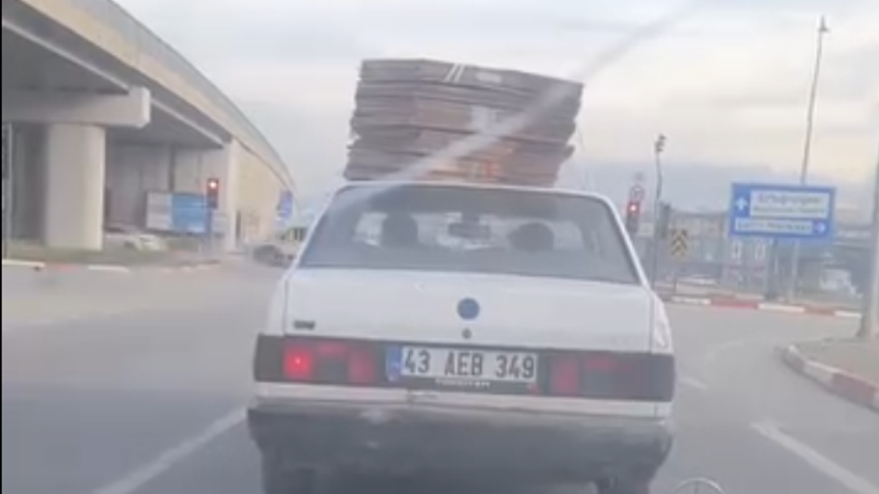 Sürücü Emirhan H. 43 AEB 349 plakalı otomobilin üzerine koyduğu malzemeleri taşıdı. Tehlikeli anlar bir sürücünün amatör kamerasına yansıdı. Sosyal medyada paylaşılan görüntüler tepki çekince İnegöl Emniyet Müdürlüğü Trafik Büro Amirliği ekipleri sürücüyü durdurup denetlediler. Sürücüye yükü karayoluna kayacak, dökülecek, saçılacak şekilde yükleme suçundan 2 bin 600 TL ve muayenesiz araç kullanmaktan 2 bin 719 TL cezai işlem uygulandı.