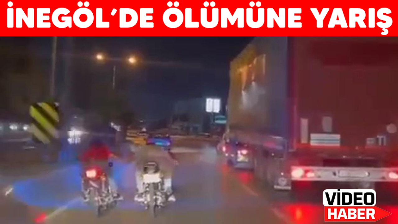 Bursa-Ankara karayolu üzeri İnegöl girişinde motosikketli gençlerin tehlikeli yarışı kameraya saniye saniye yansıdı.