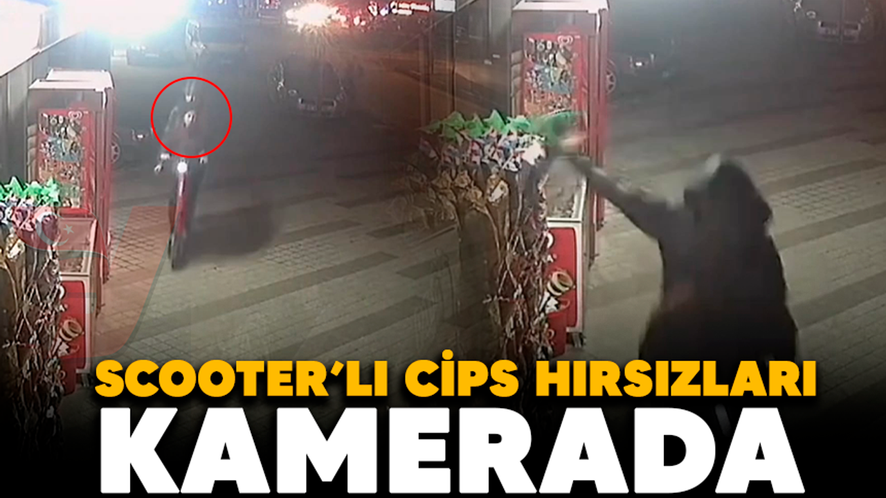 İnegöl’de bulunan ve kiralama sistemi ile kiralanan scoter'a binen iki genç kaldırım üzerinde seyir halinde iken bir marketin önündeki rafta bulunan bulunan cips çalarak kayıplara karıştı.