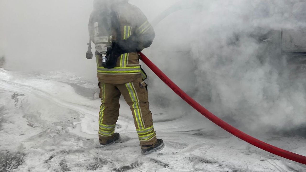 Durumu fark eden sürücü aracını yol kenarına park edip itfaiyeye haber verdi. O sırada araç alev alev yanmaya başladı. Yangın yerine çok sayıda itfaiye ekibi sevk edildi. Ekipler yangına müdahale ederek kısa sürede söndürdüler.