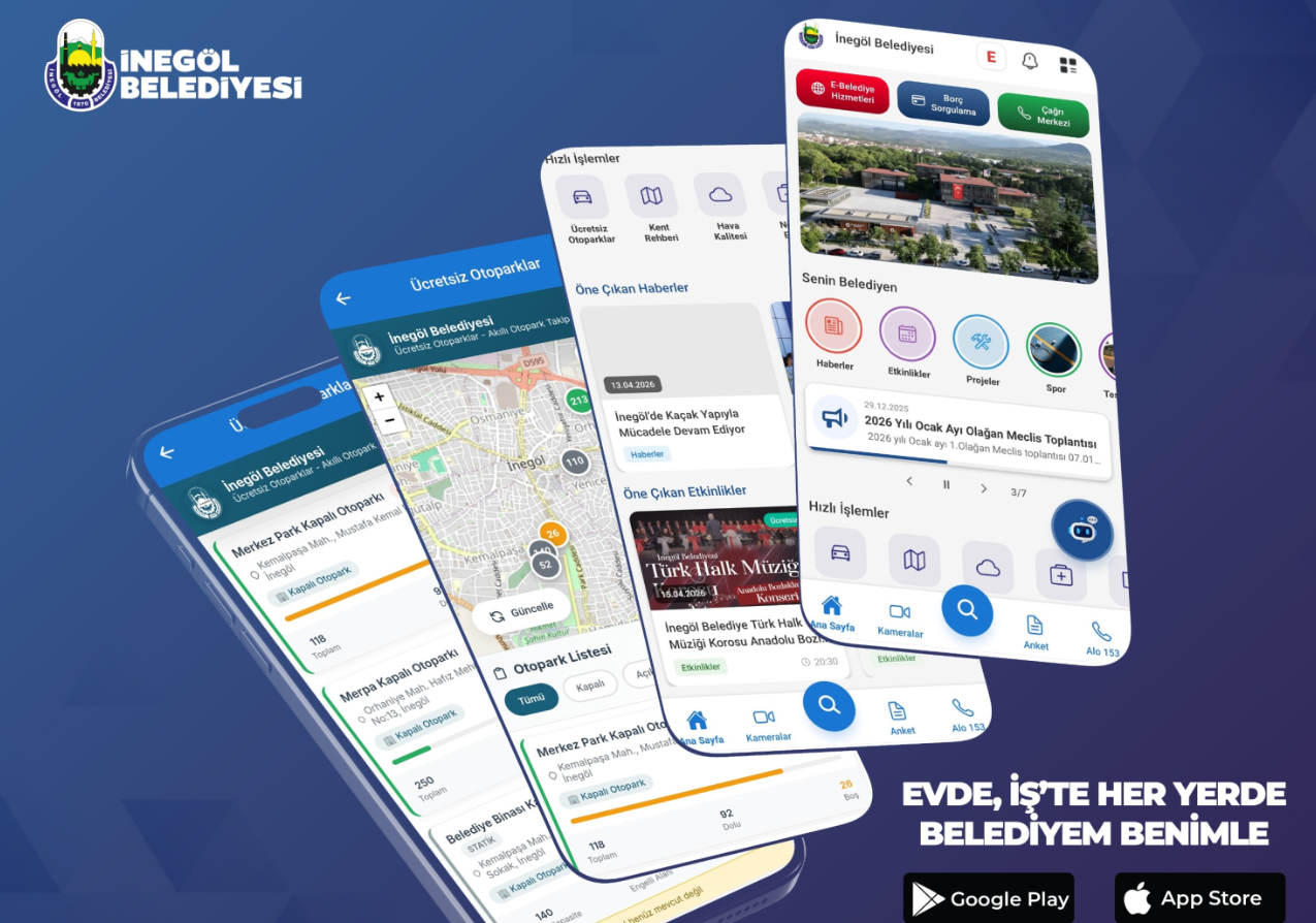 İnegöl Belediyesi’nin “Senin Belediyen” yaklaşımıyla hayata geçirdiği bu yenilikçi uygulama, vatandaşların belediye ile olan iletişimini güçlendirirken; hızlı, şeffaf ve erişilebilir hizmet anlayışını da bir üst seviyeye taşıyor. Yenilenen uygulama sayesinde İnegöllüler, şehirle ilgili ihtiyaç duydukları bilgiye tek dokunuşla ulaşabilecek. Uygulama IOS ve Android tüm mobil cihazlarda kullanılabiliyor.