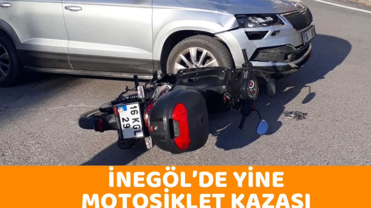 Edinilen bilgiye göre Yeni Mahalle Şahlan sokak üzerinde seyir halinde olan Doğan F. (44) yönetimindeki 16 F 9898 plakalı otomobil ile İhsan U. (48) yönetimindeki 16 KGL 29 plakalı motosiklet çarpıştı. Kaza sonucu yaralanan motosiklet sürücüsüne ilk müdahaleyi haber verilmesi üzerine kaza yerine gelen 112 Acil Servis Ambulansında görevli sağlık ekipleri yaptı. Yaralı ambulansla İnegöl Devlet Hastanesi Acil Servisine götürülerek tedavi altına alındı.