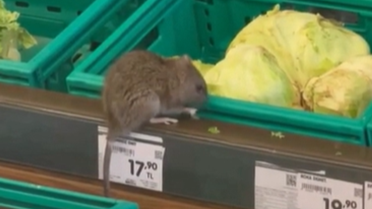 Olay, Mahmudiye Mahallesi Suyolu Caddesi üzerinde bulunan bir zincir market şubesinde meydana geldi. Alışveriş için markete gelen müşteriler, manav reyonunda dolaşan büyük bir fareyi fark etti. Gördükleri manzara karşısında şoke olan vatandaşlar, o anları cep telefonu kamerasıyla kaydetti.