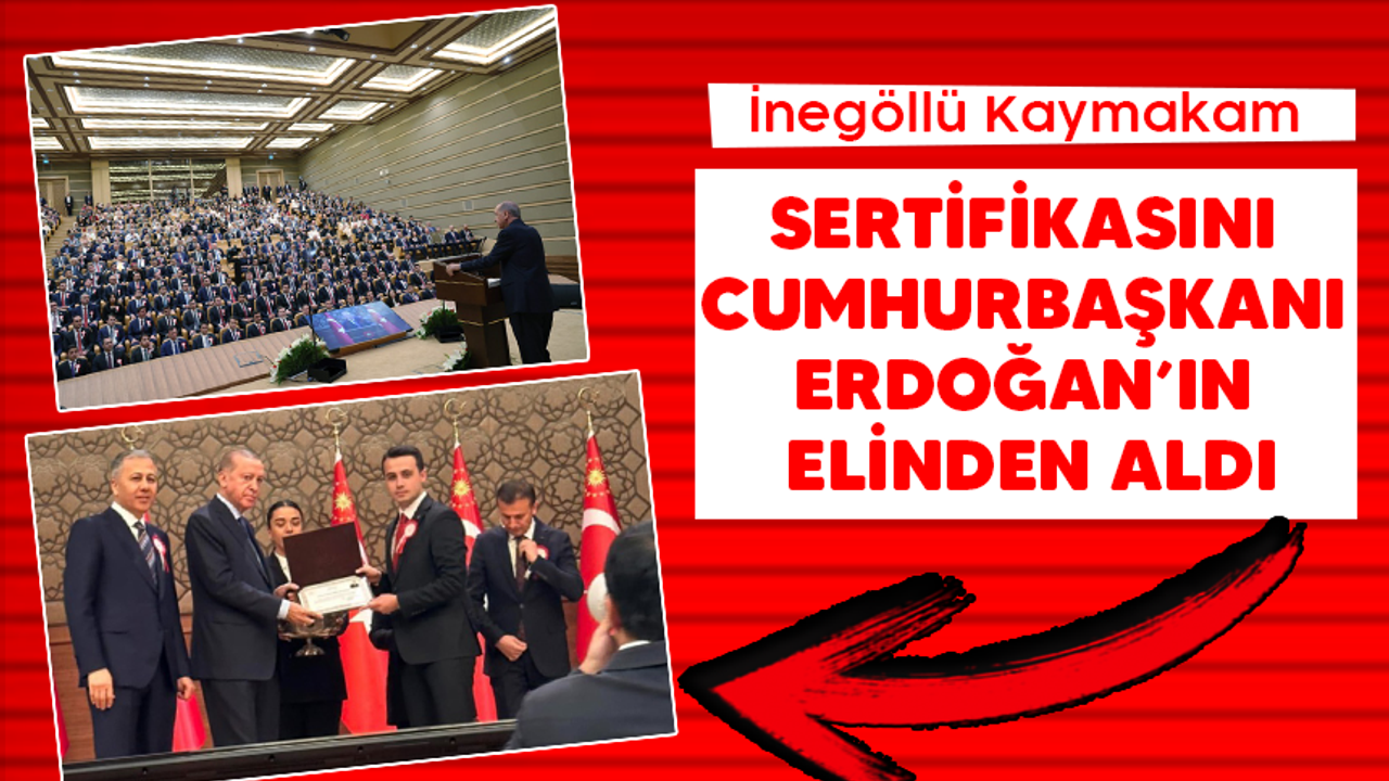 Tören sonunda İnegöllü Kaymakam Furkan Alpay, sertifikasını Cumhurbaşkanı Recep Tayyip Erdoğan’ın elinden aldı.