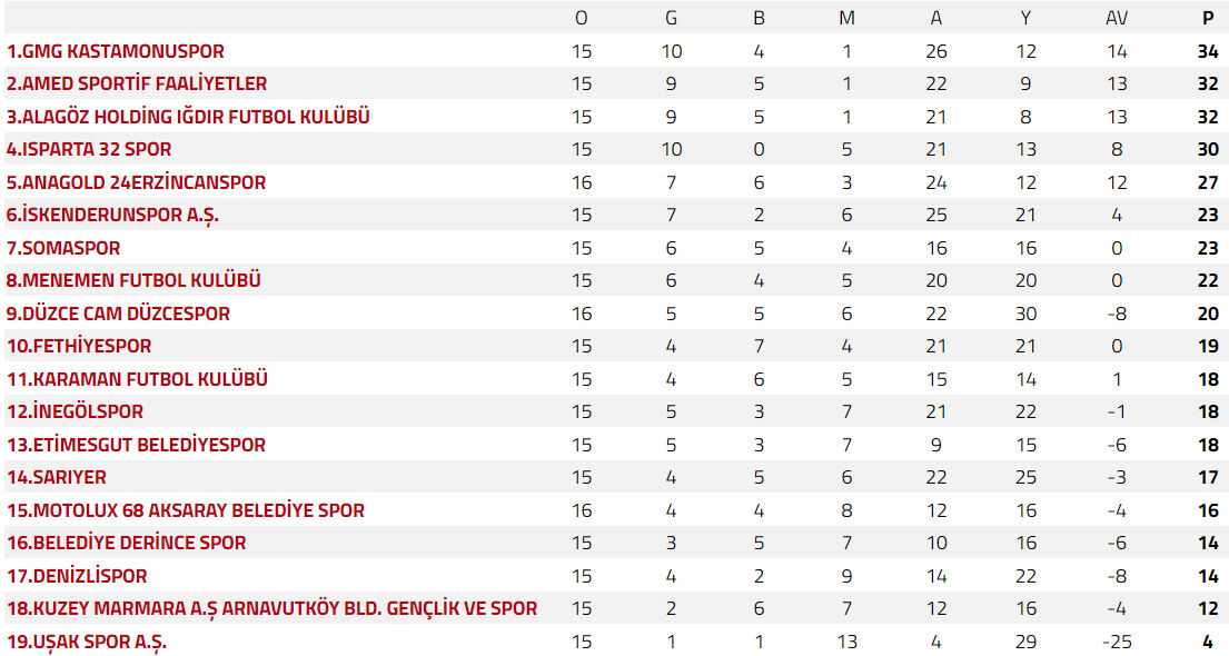16 hafta sonunda topladığı 18 puanla ligde 12. sırada yer alan ekibimiz, bu maçlardan 5 galibiyet çıkarırken, 3 maçta berabere kaldı, 7 maçta ise yenildi. Attığı 21 gole karşılık kalesinde ise 22 gol yiyen ekibimiz, play-off potasından 5 puan uzaklaşırken, küme düşme hattıyla ise arasında sadece 4 puan bıraktı.