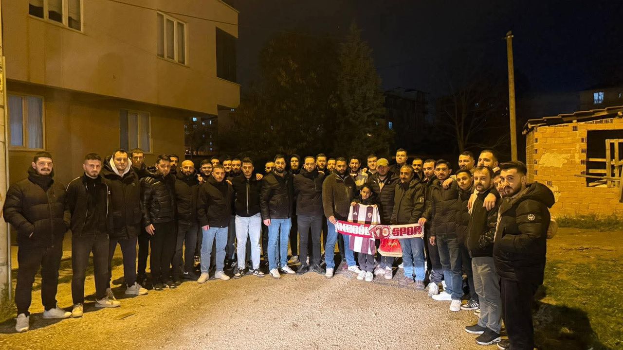 Ultras İnegölspor taraftarı dün akşam Muhammed K.'yi evinin önünde ziyaret etti. Öğrenciye moral veren taraftar gurubu, çocuğa İnegölspor forması da hediye etti.