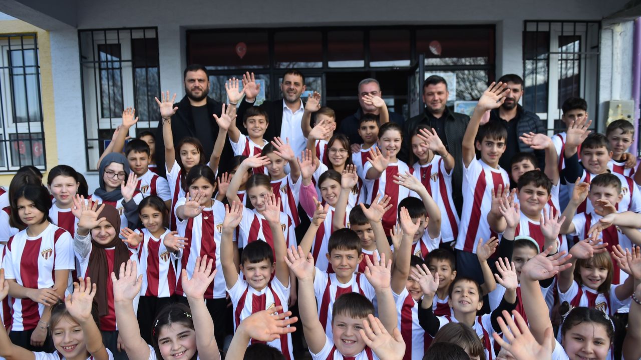 Amerika’da yaşayan iş insanı Nasir Binali’nin sponsorluğunda, Küçükyenice İlk ve Ortaokulu’ndaki 157 öğrenciye forma ve eşofman takımları dağıtıldı.