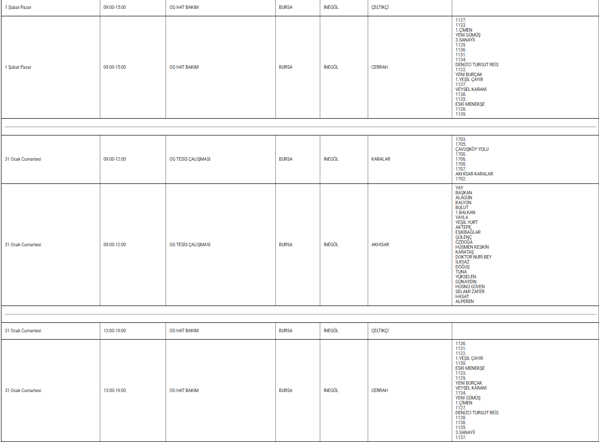 Yapılan açıklamada, kesintilerin şebeke bakım ve altyapı iyileştirme çalışmaları nedeniyle gerçekleştirileceği ifade edildi. UEDAŞ’ın resmi sitesinde paylaşılan bilgilere göre; orta gerilim hat bakımı, tesis çalışmaları, yeni abone bağlantıları, trafo bakımı ve ağaç kesim faaliyetleri kapsamında bazı bölgelerde belirli saatlerde elektrik verilemeyecek. Bu çalışmalar nedeniyle Çeltikçi, Cerrah, Karalar, Akhisar, Süleymaniye, Osmaniye, Yeniceköy ve Huzur mahallelerinin geçici olarak elektrik kesintisinden etkileneceği bildirildi.