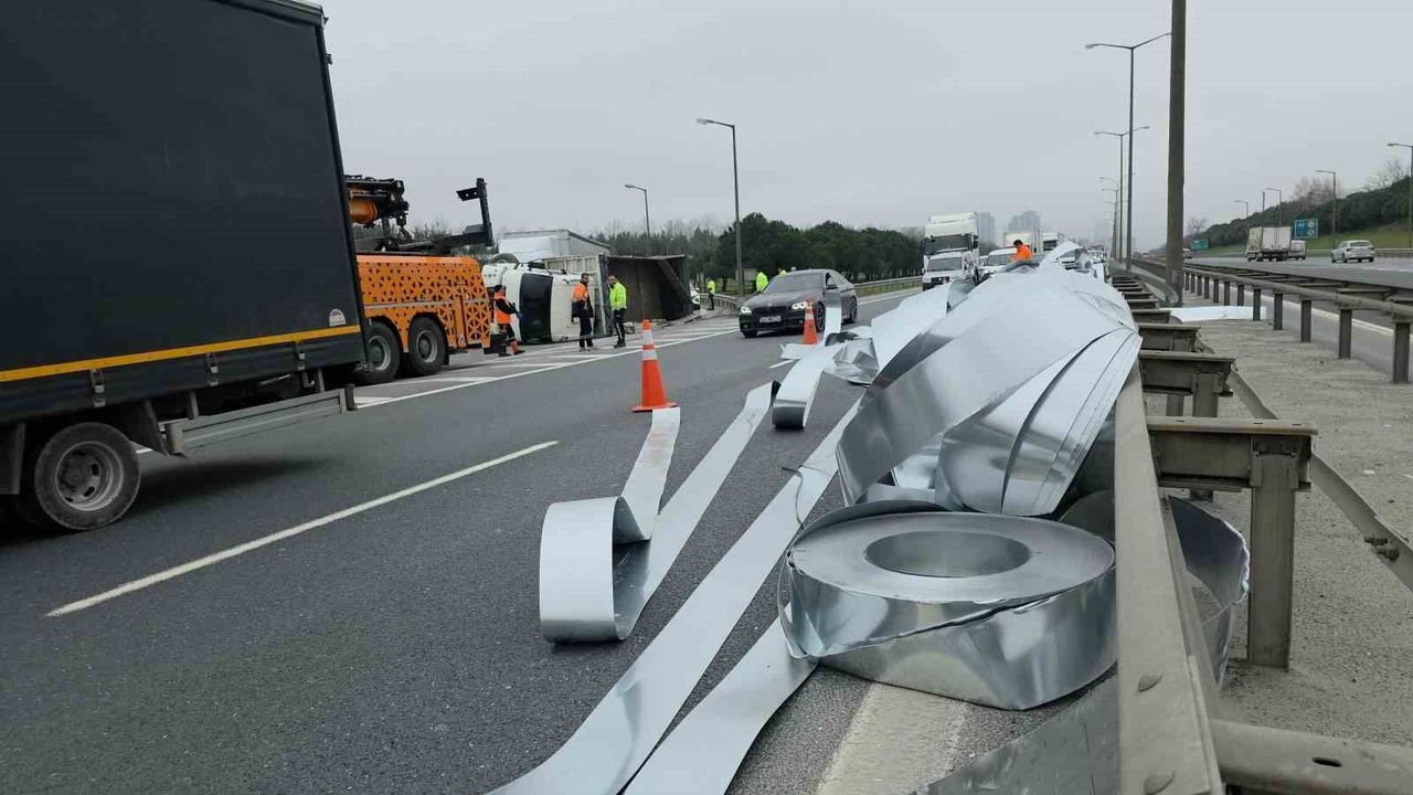 Edinilen bilgilere göre, sürücülüğünü Ferhat Omaç'ın yaptığı sac yüklü kamyon, TEM Otoyolu Hadımköy bağlantı yolundaki virajı döndüğü sırada kontrolden çıkarak yan yattı. Araçta bulunan rulo halindeki saclar yola savrulurken, otoyolda ulaşım tamamen durdu.